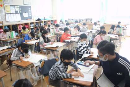 静かにじっくりと書き写しながら、楽しかった学習を振り返ります。