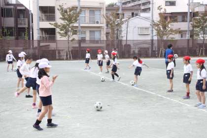 2年生が校庭でサッカーをしました。