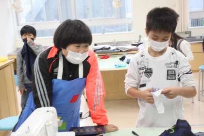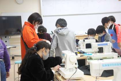 ミシンの扱いもバッチリで、みんな上手にミシンがけを進めています。