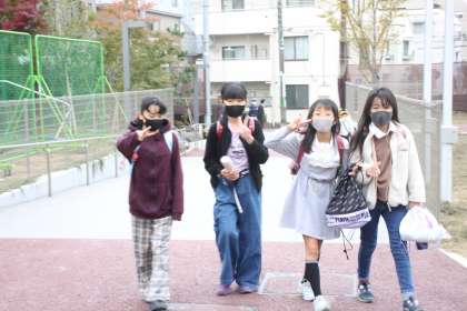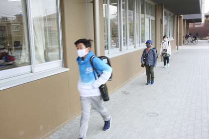 今週も元気に過ごした若小の子どもたちが元気に登校してきます。