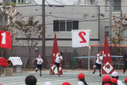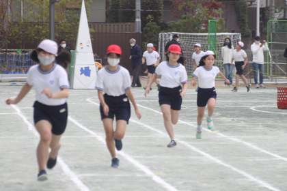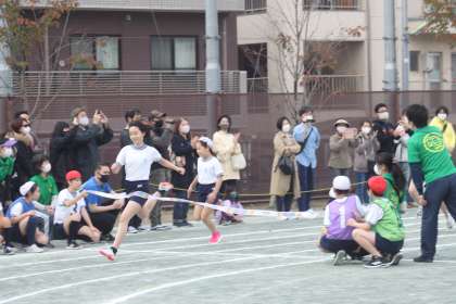 コーナーワークも美しく、ゴールの瞬間まで全力疾走の6年生。