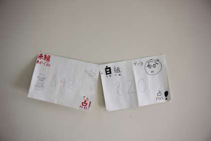 校内のあちらこちらに、体育発表会の余韻ともいうべき形跡が残っています。