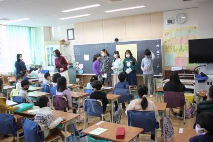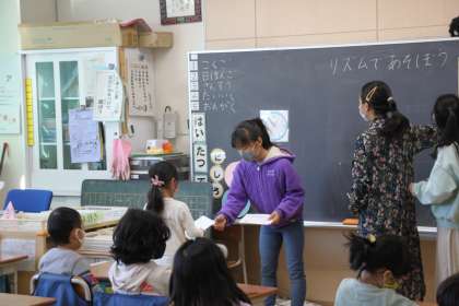 1年生のお名前を呼んで、6年生お手製のしおりを手渡していきます。