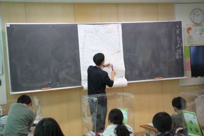 3年生が明日、安全チェックに出かける場所について、事前学習をしています。