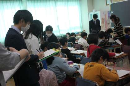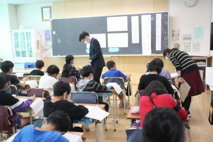 4年生の教室を会場に、研究員による研究授業を行いました。