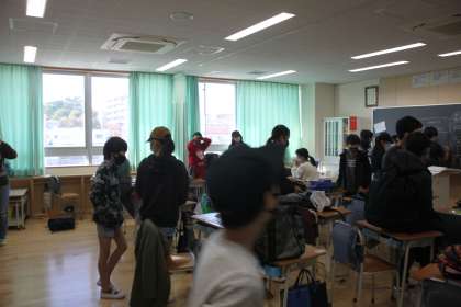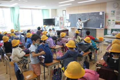 やる気あふれる6年生と、スタンバイが終わった1年生。