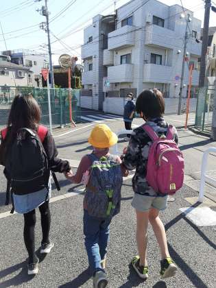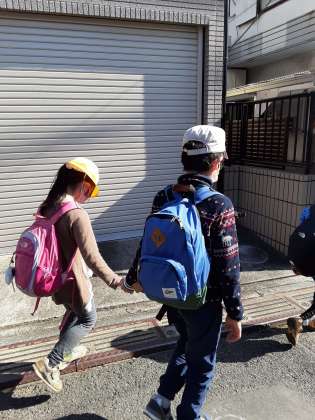 1年生と6年生、すっかり打ち解けて学校へ帰ります。
