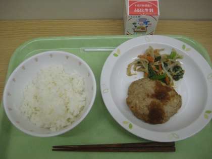 ごはん 豆腐入りハンバーグ 野菜のごまだれかけ 牛乳