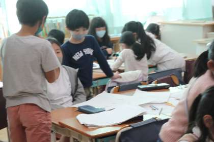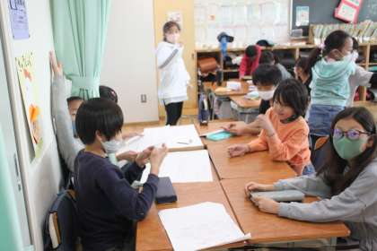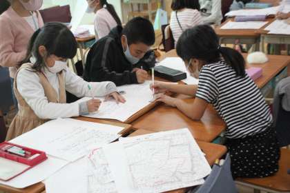 3年生が昨日と今日のまち探検の結果をまとめる、あんぜんマップ作りに取り組みました。