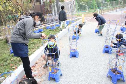 1年生がアサガオのリース作りに着手しました。