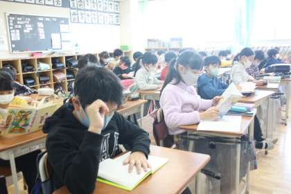 チャイムが鳴ったら自然に読書に取り組み始めます。