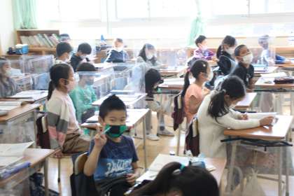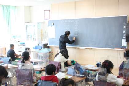 2年生が算数の時間に、かけ算の学習をしています。