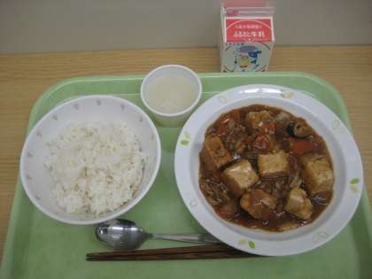 ごはん 家常豆腐 ホワイトゼリー 牛乳