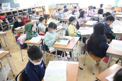 1年生が道徳の学習をしています。