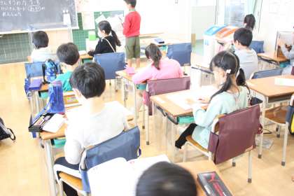 1年生の朝の時間、若村塾の活動です。
