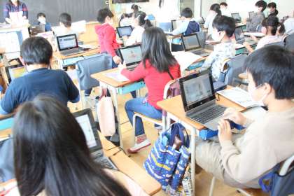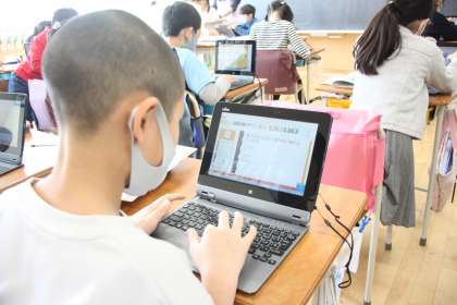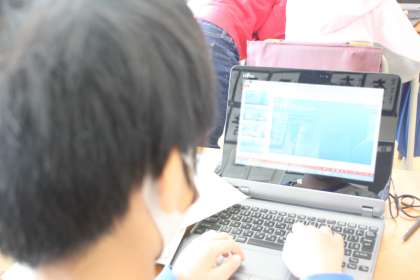 4年生が総合的な学習の時間に、スライドショーをつくっています。