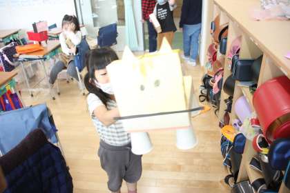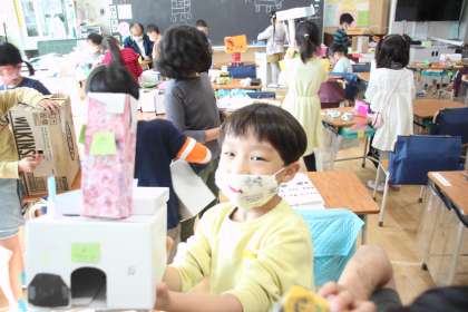 1年生が図工の時間に、箱を使った工作に取り組みました。