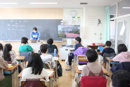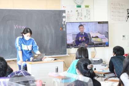 6年生がビデオ教材を使って、外国語活動の学習をしています。