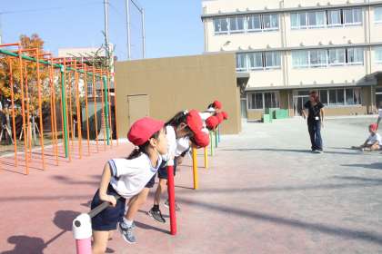 今日は勝ち抜きじゃんけんに運動の要素を取り入れた活動と、なわとび、そして鉄棒をしました。