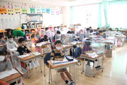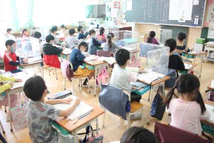 教科書に載っている説明文の中から、クレーン車をテーマに取り上げ、その特徴を説明する活動に取り組んでいます。