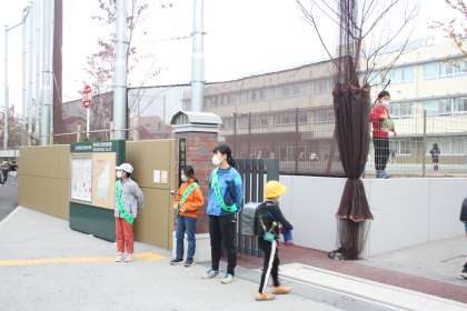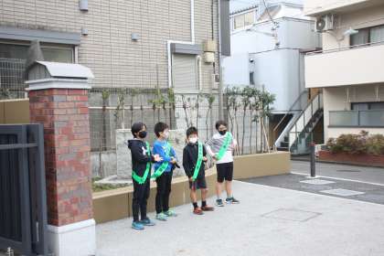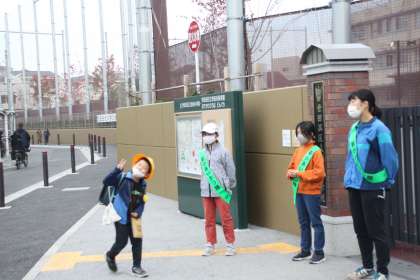 5年生が朝のあいさつ運動を行っています。
