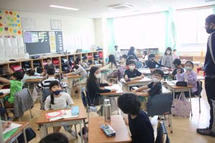 安全を考えて、ソーシャルディスタンスをとっての活動です。