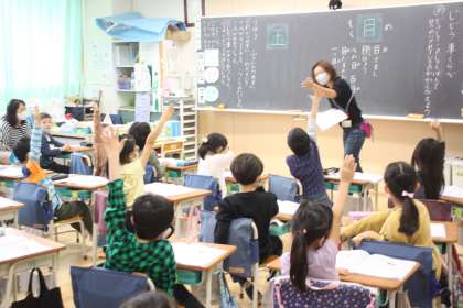 先生が子どもたちから、その漢字を使った言葉を集めようとすると、次から次に手が挙がり、先生も大変!