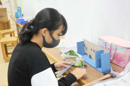 木工に取り組む6年生たちが、仕上げの作業に取り組みました。
