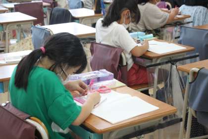 今日はコンパスを使って、二等辺三角形の作図をしました。