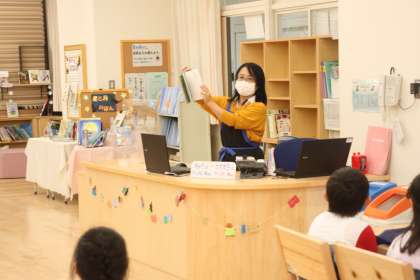 いつもの読み聞かせ、貸し出しと返却、読書をしたまとめとして、司書さんのおすすめコーナーがやってきます。