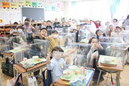 お代わりが終わったらもちろんみんなで「お〜いし〜!」