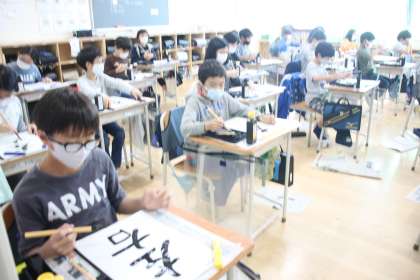 墨汁の香り漂う教室内で、筆を滑らせます。