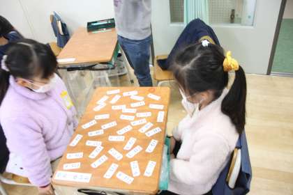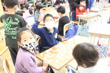 今日はまとめのページで学習のおさらいをした後は、計算カードを使った計算カルタをしました。