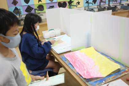 背景の段階で4年生たちのこだわりがいっぱい詰まっています。