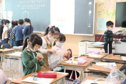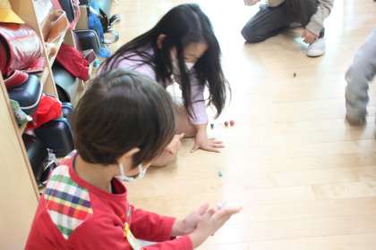 6年生と一緒に羽根木公園に行ったときに拾ったどんぐりを使って、素敵なコマができあがります。