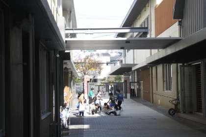 若小名物の松陰(まつかげ)ストリートに集まった3年生。