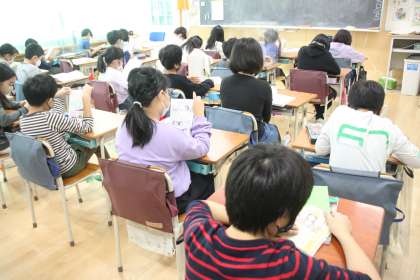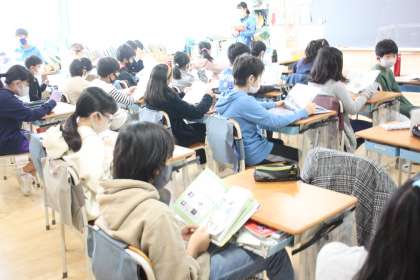 みんなで静かに読書に取り組むのは、低学年から高学年まで共通です。