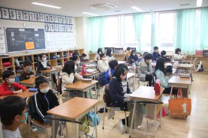 始めの6年生のあいさつ、校長先生のお話、そして看護当番の先生からのお話と3部構成の若小放送朝会。