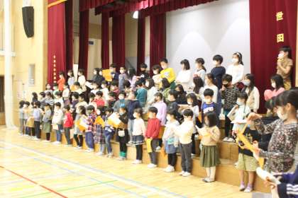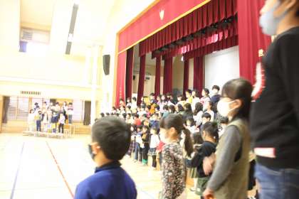 体育館の外にまで聞こえてくる歌声は「スイミー」です。