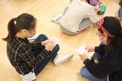 とってもコンパクトなしおりをみながら、大根についてのレクチャーを受ける3年生。