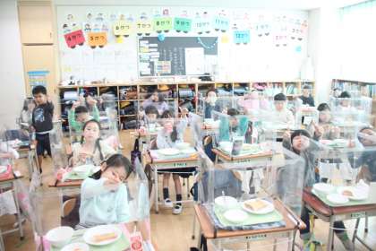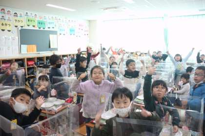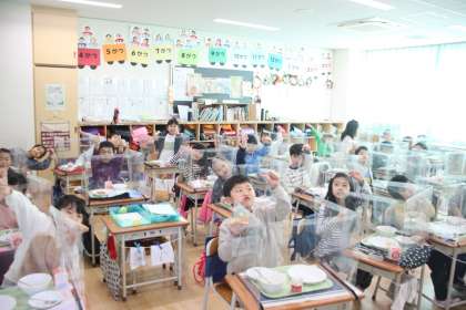 1年生の教室では、給食の時間が静かに過ぎていっています。