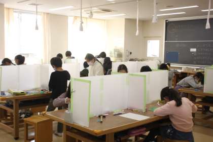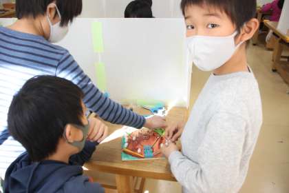 3年生が図工の時間に、ビー玉を転がしてつくるゲームの制作に取り組んできました。