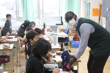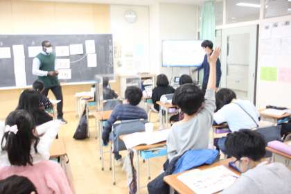 4年生の教室に、ALTのアミン先生が登場!