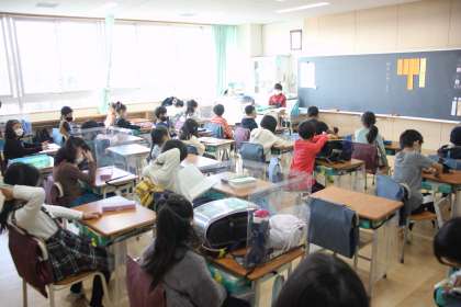 週の始まりを告げる全校朝会が放送で行われました。