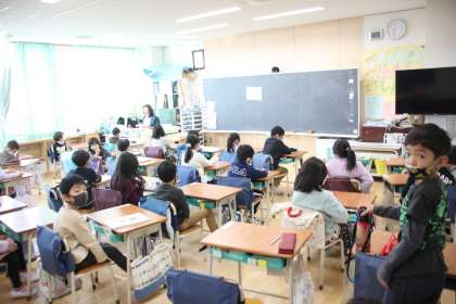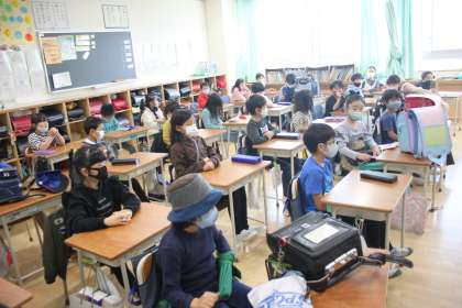 神妙な表情で話に聞き入る若小の子達。