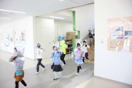 2時間目の途中に、突然緊急放送が鳴り響き、避難訓練が始まりました。