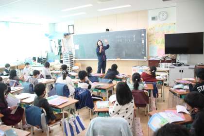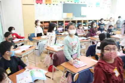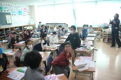 やまびこ役を交代でつとめながら、歌の追いかけっこを楽しみます。