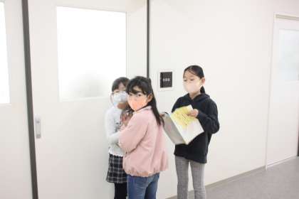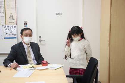 緊張の面持ちで校長室に入る3年生。