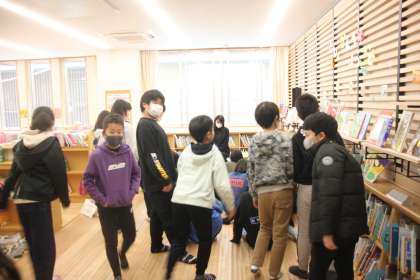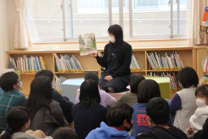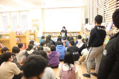 今日は学校図書館司書の先生による読み聞かせがあります。