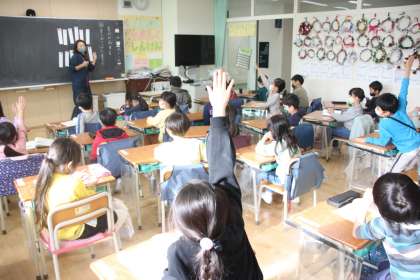 先生の出した例示に即座に答える1年生。